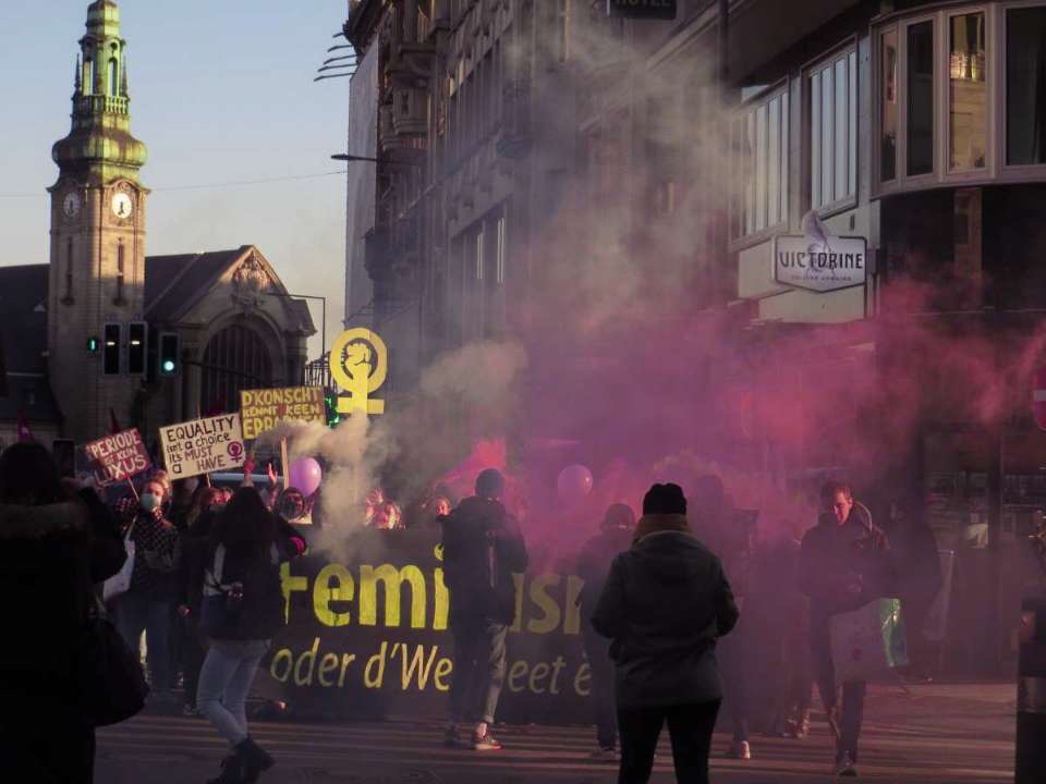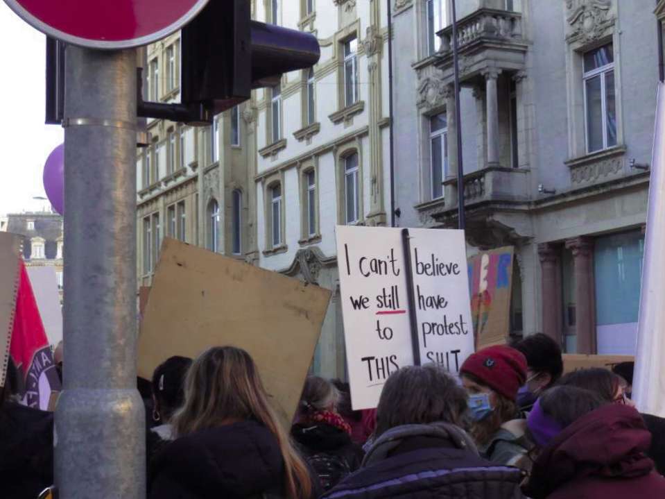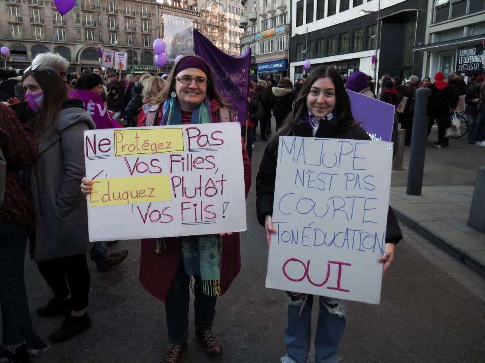 On demande aussi que les violences contre les femmes cessent. On parle notamment des violences psychologiques, qui ne sont pas très reconnues. Il y a aussi un terme qui s’appelle « féminicide », qui est un meurtre d’une femme parce qu’elle est une femme, par son conjoint ou ex-conjoint. C’est quelque chose qui n’existe pas dans le Code Pénal luxembourgeois, et vu qu’il n’y a pas de définition, il n’y a pas non plus de chiffres. On ne sait pas combien de féminicides il y a au Luxembourg. On revendique donc une définition dans le Code Pénal. Et grâce aux chiffres, on peut trouver comment lutter contre cela.