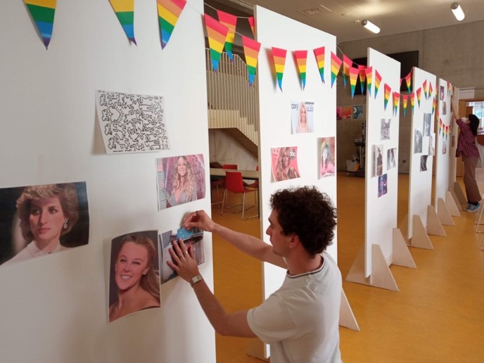 Aborder la question de l’homophobie et de la transphobie semblait donc être une vraie nécessité et attente de la part des élèves. Toutefois, certains ont émis quelques réserves quant à l’efficacité de l’initiative et à l’angle de l’exposition. De nombreux élèves ont trouvé dommage que cette problématique soit abordée seulement durant une semaine et estiment qu’elle devrait davantage rejoindre des sujets de fond qui méritent vigilance et information tout au long de l’année. Un élève de terminale m’a ensuite fait part de sa déception de constater essentiellement des artistes représentés dans l’exposition et déplore le manque de personnalités issues d’autres horizons ou de personnalités plus banales montrant que les luttes pour les droits des LGBTQ+ se jouent aussi au quotidien. Nathan a répondu à ce constat en me glissant que ces personnalités devaient davantage être vues comme des figures d’exemples non exhaustives auxquelles les personnes LGBTQ+ doivent en grande partie leurs droits, pourtant toujours trop partiels et inégaux selon les pays et les conditions, il a ensuite ajouté qu’il ne fallait pas oublier que « les personnes ayant le plus milité pour nos droits proviennent du milieu de l’art et du spectacle. »