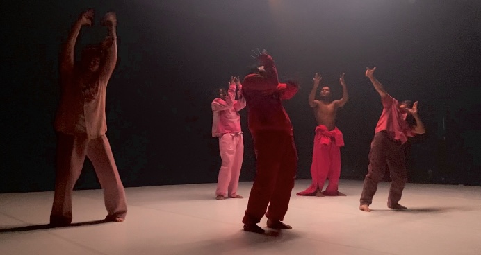 La mise en scène est singulière, oscillant entre explosions d’énergie et vagues de mélancolie. Sur le plan musical, Loanga propose un mix de morceaux de musique dynamiques ainsi qu’un poème récité : « Enivrez-vous » de Charles Baudelaire. La qualité de cette mise en scène duale est complétée par un jeu de lumière aussi vibrant que doux entre rose, orange et écran de fumée. Derniers mais pas des moindres, les cinq danseurs engagés corps et âme dans la chorégraphie transportent les spectateurs dans ce monde passionné créé par Carmel Loanga. L’énergie qui les porte est extraordinaire, leurs expressions faciales sont captivantes et leur précision est remarquable. Le tout est si prenant qu’il donne l’impression de partager les sentiments vécus par les danseurs.