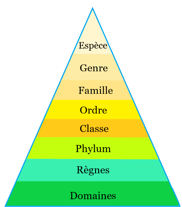 La taxonomie classe et hiérarchise les différents êtres vivants en fonction de leurs caractéristiques génétiques et de l’évolution des espèces. La catégorisation des espèces passe ainsi par huit rangs obligatoires appelés taxons. Par ordre décroissant de l’étendue du taxon, il y a : le domaine, le règne, le phylum, la classe, l’ordre, la famille, le genre, et l’espèce. D’autres taxons non-obligatoires peuvent être utilisés lorsque que les taxons initiaux ne sont pas suffisants pour la catégorisation.