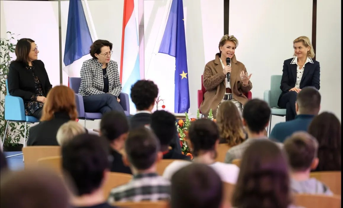 Le 18 novembre 2022, Son Altesse Royale la Grande-Duchesse Maria Teresa de Luxembourg, a fait l’honneur de répondre à l’invitation des élèves de luxembourgeois du lycée Vauban. L’évènement organisé par l’enseignante de langue luxembourgeoise, Madame Nathalie Guilbert, s’est déroulé en présence de Madame Claire Lignieres-Counathe, Ambassadrice de France au Luxembourg, et, de Madame Marguerite Poupart-Lafarge, proviseure de l’établissement. Les élèves présents ont pu poser des questions à Son Altesse, et ainsi découvrir la vie, le quotidien, les engagements et le rôle de Grande-Duchesse. Portrait.