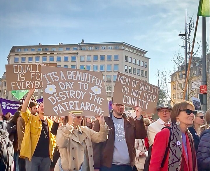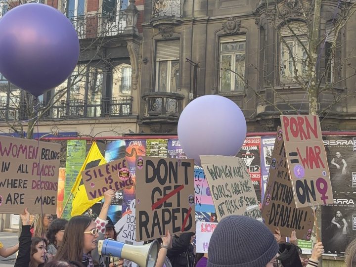 « Solidarité avec les femmes du monde entier ! ». C’est le slogan que scandent ce samedi 8 mars 2025 plus d’un millier de femmes, d’hommes et d’enfants de tout âge à l’occasion de la journée internationale des droits des femmes lors de l’annuelle marche féministe, la grève des femmes ou Fraestreik, qui s’est tenue à Luxembourg. Parti.es de la Place des Paris à quinze heures, les manifestant.es sont arrivé.es au terme du Pont Adolphe après une marche mettant en avant de nombreuses revendications ainsi qu’un esprit de fraternité – et de sororité. Reportage et entretien avec plusieurs manifestantes.