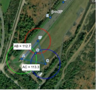 3. Faire de même avec le troisième point, permettant d’éliminer l’un des deux points et indiquer l’emplacement exact.