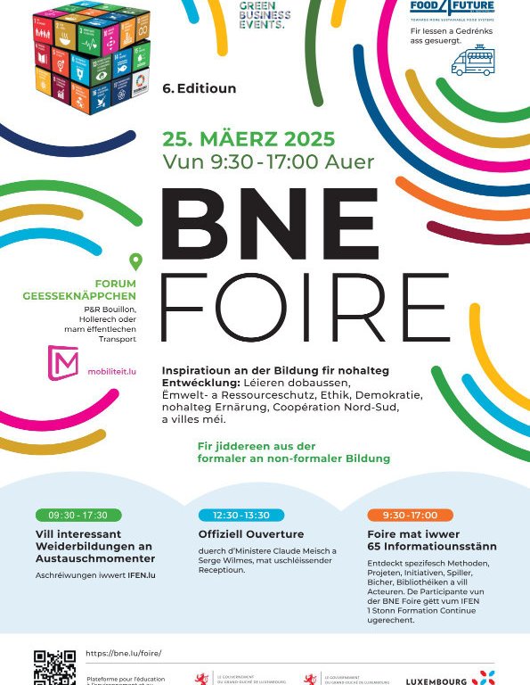Ainsi cette sixième édition de la Foire BNE s’est conclue avec notamment les discours du Ministre de l’éducation, Claude Meisch et du Ministre pour l’écologie, Serge Wilmes, et reprendra à nouveau en 2026, ouverte au public. Les éco-délégués de Vauban ont pu beaucoup apprendre de cette expérience qui était enrichissante et motrice d’espoir par les nombreux échanges avec d’autres acteurs du développement durable.
