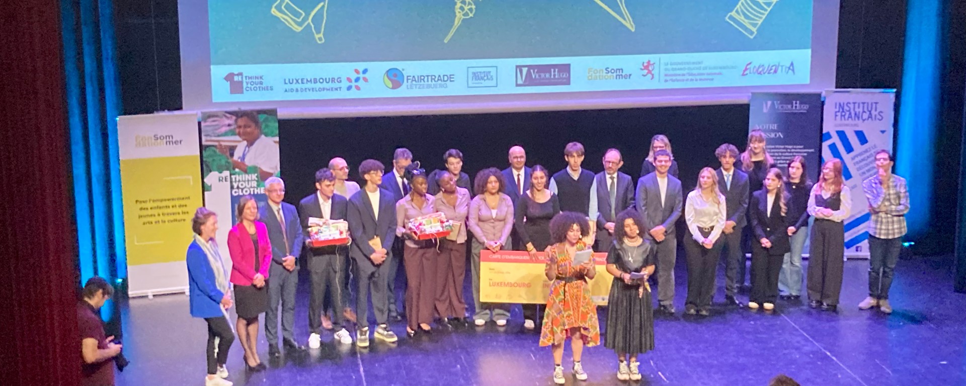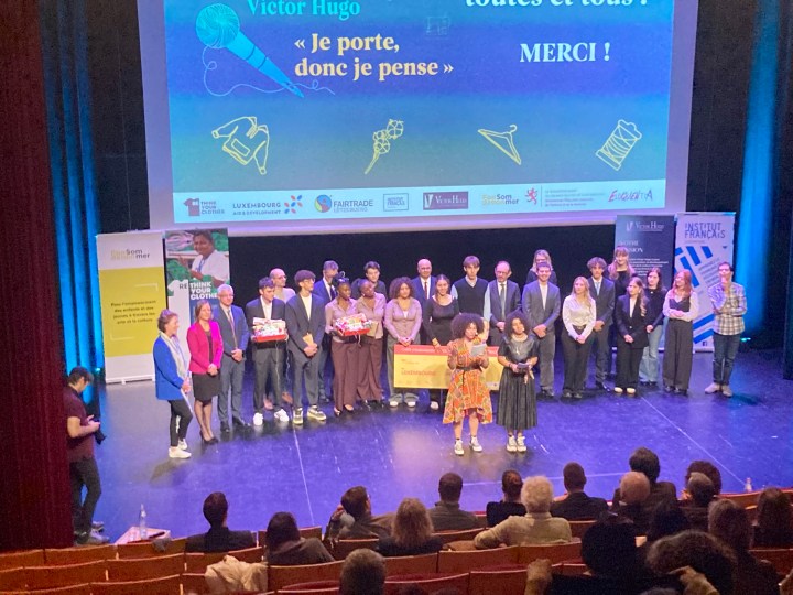 Le 8 décembre 2025 s‘est déroulée la finale du concours d’éloquence « Je porte donc je pense », organisé par la fondation Victor Hugo. Ce projet prestigieux s’est réalisé en partenariat avec l’organisation Fairtrade Lëtzebuerg, l’Institut Français et le Ministère des Affaires Étrangères Luxembourgeois (MAE). Le jury était présidé par Monsieur l’Ambassadeur de France, Christophe Bouchard, ainsi que de représentants de l’Institut Français, du MAE et de la fondation Victor Hugo.